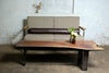 Tables are finished with poly and hand-rubbed beeswax, the flat steel legs are welded right here in our shop. The tables also feature beautifully charred edges and butterfly joinery, I'm sure you're gonna dig it.